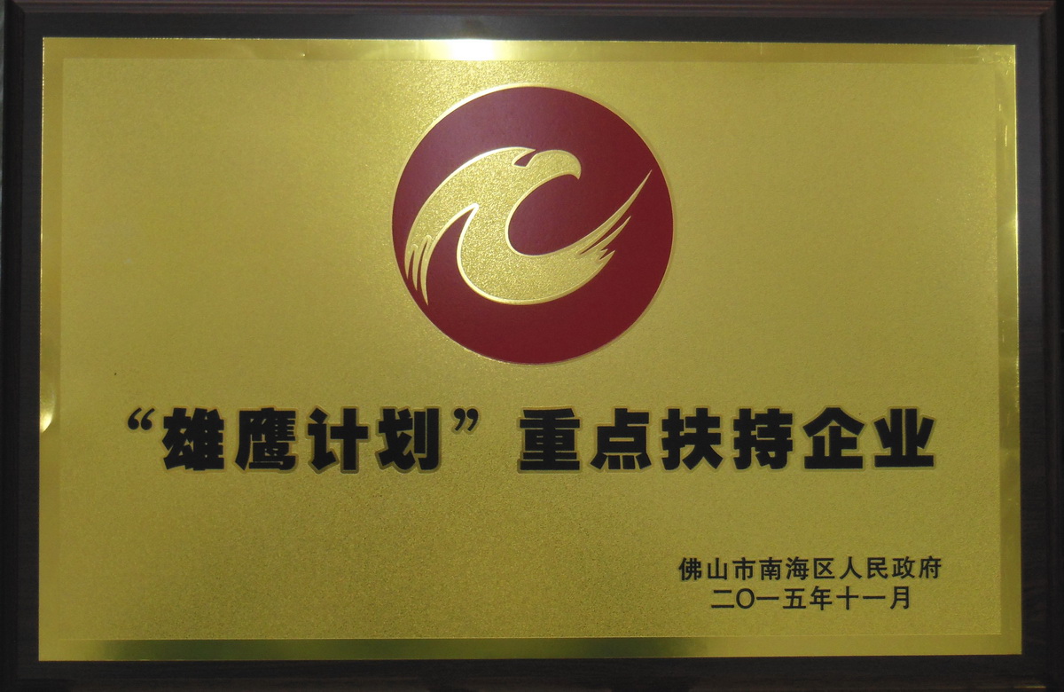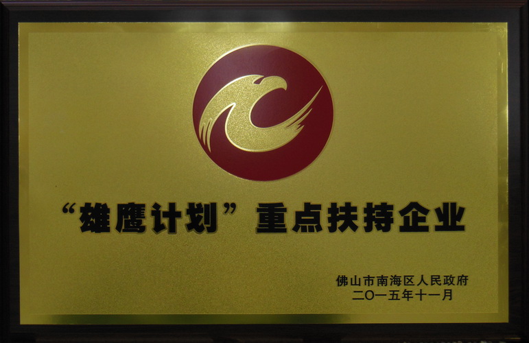 • 2015年11月 “雄鷹計劃”重點扶持企業(yè)牌匾 (佛山市南海區(qū)人民政府)