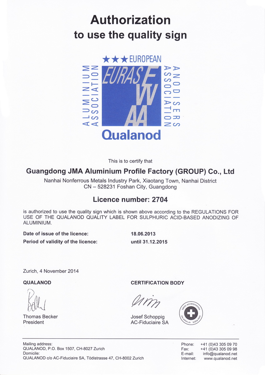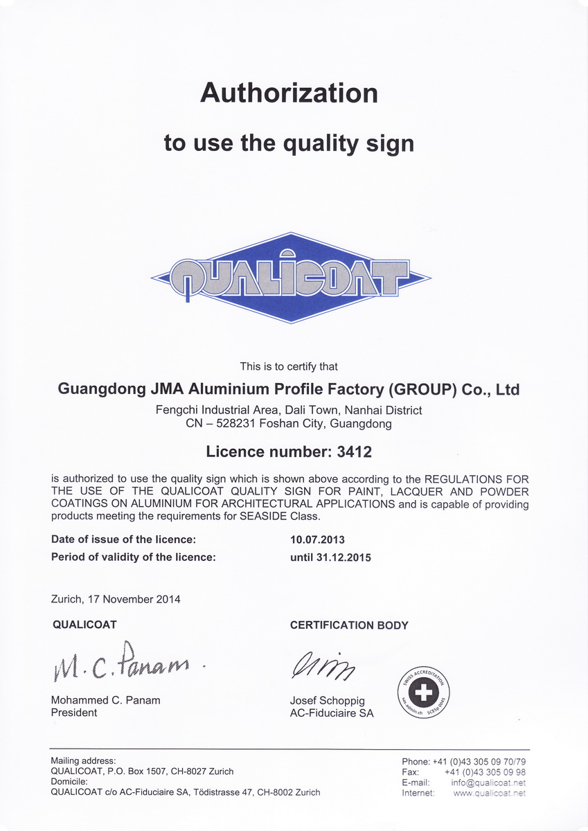 • Qualicoat出口認證