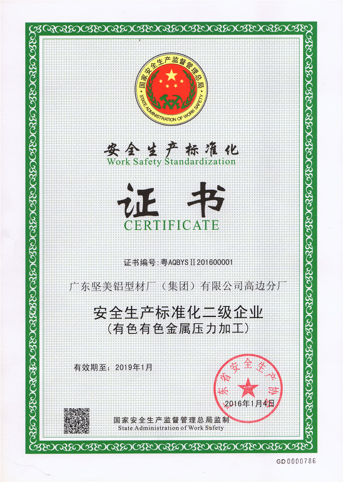 • 廣東省安全生產(chǎn)標準化證書