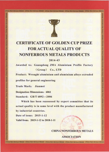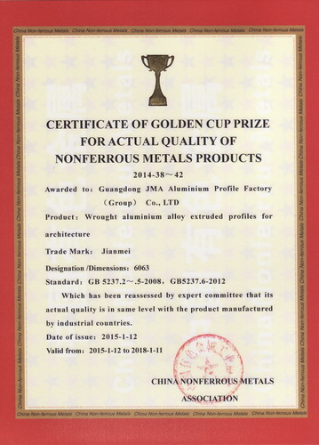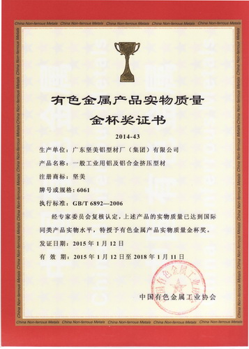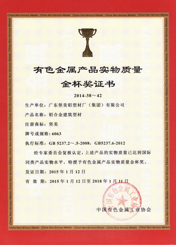 • 有色金屬產(chǎn)品實(shí)物質(zhì)量認(rèn)定金杯獎(jiǎng)(鋁合金建筑型材)