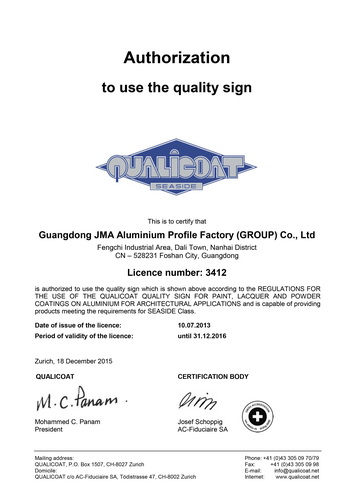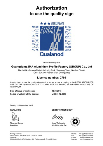 • Qualicoat出口認(rèn)證