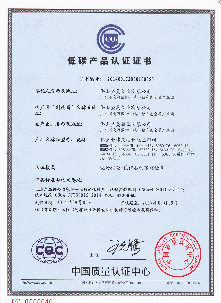 • 低碳產(chǎn)品認(rèn)證證書(shū)