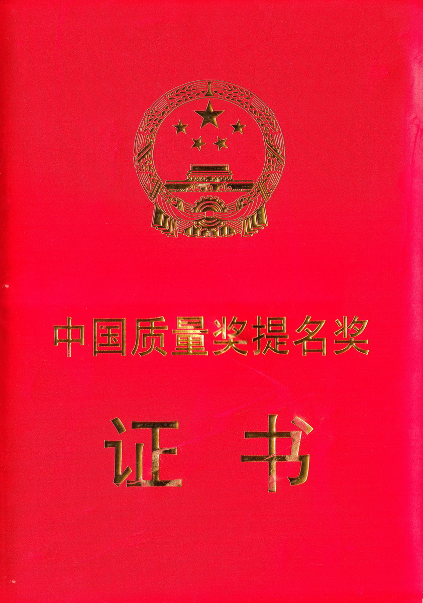 • 2016年2月 中國(guó)質(zhì)量獎(jiǎng)提名獎(jiǎng)證書(shū)封面