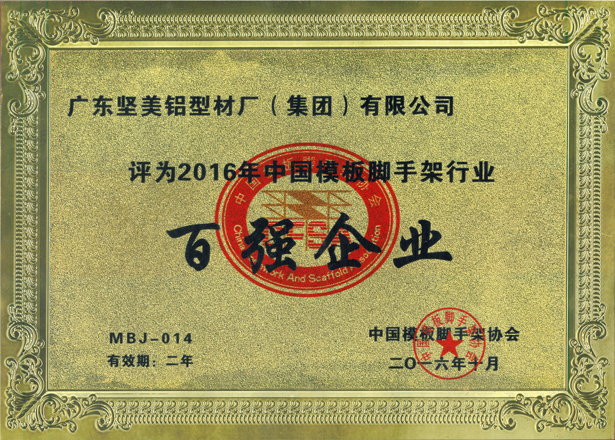 • 2016年度中國(guó)模板腳手架行業(yè)百?gòu)?qiáng)企業(yè)