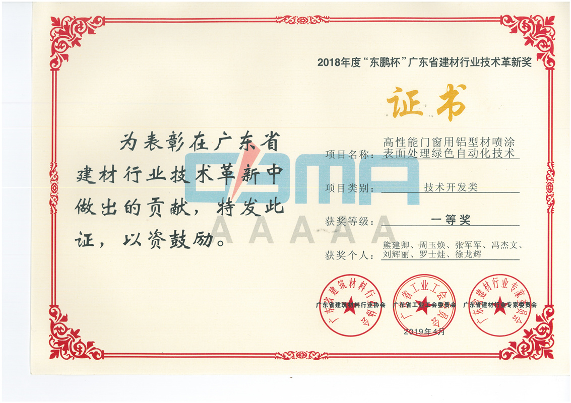 2019年4月東鵬杯廣東省建材行業(yè)技術(shù)革新獎