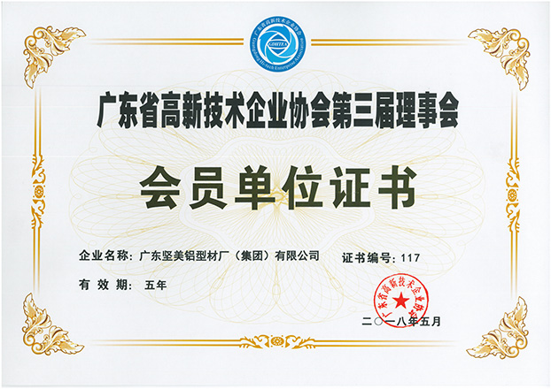 廣東省高新技術(shù)企業(yè)協(xié)會第三屆理事會會員單位證書