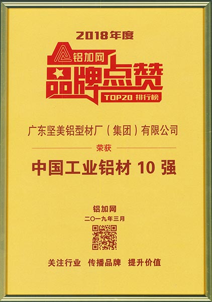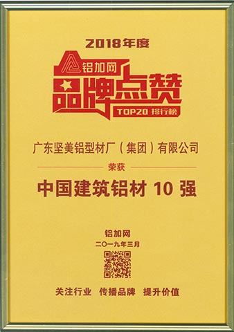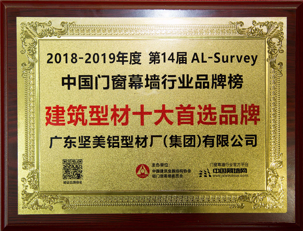 2018-2019年度中國門窗幕墻行業(yè)品牌榜建筑型材十大首選品牌