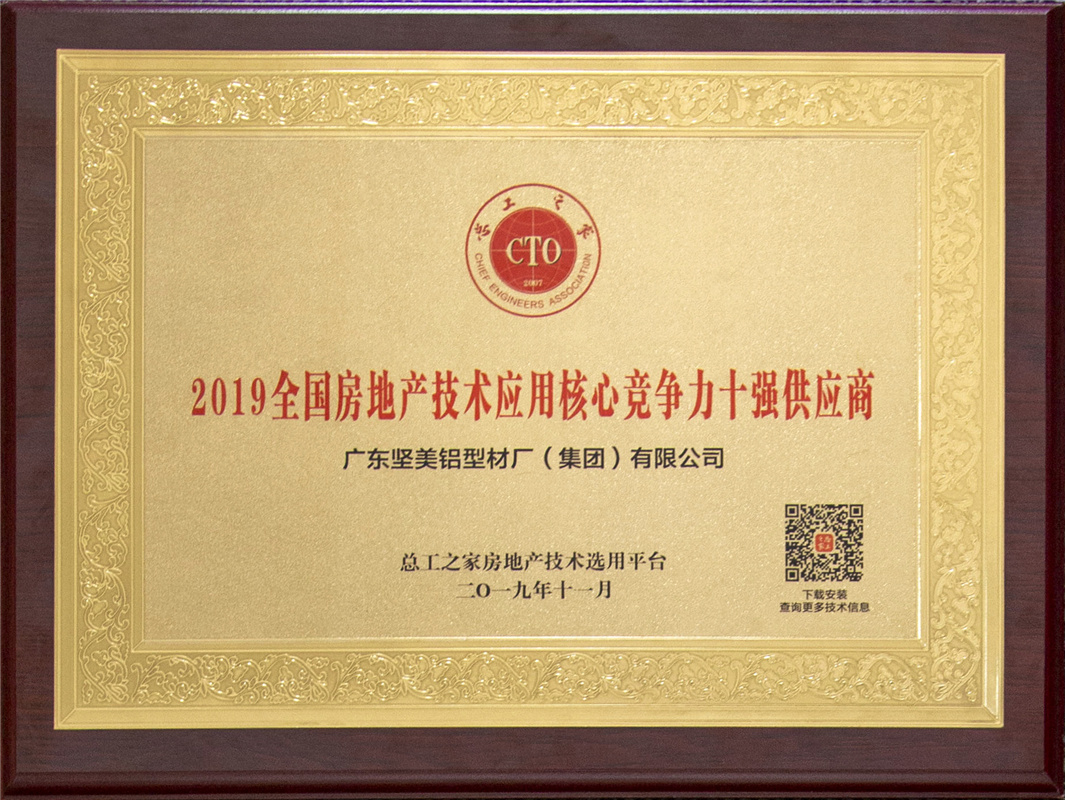2019全國房地產(chǎn)技術(shù)應用核心競爭力十強供應商(廣東堅美)