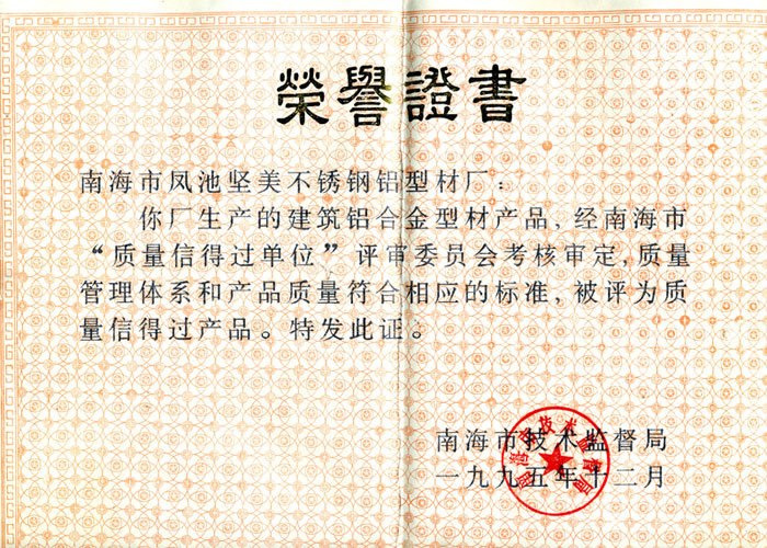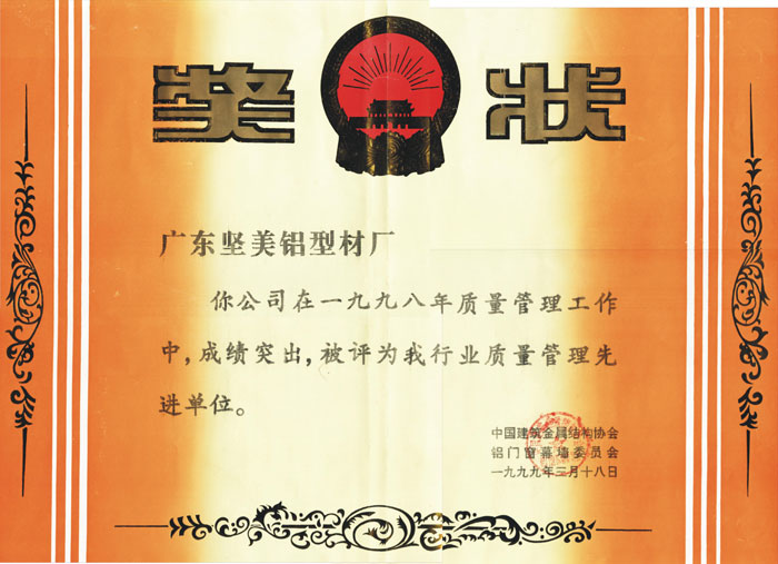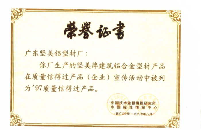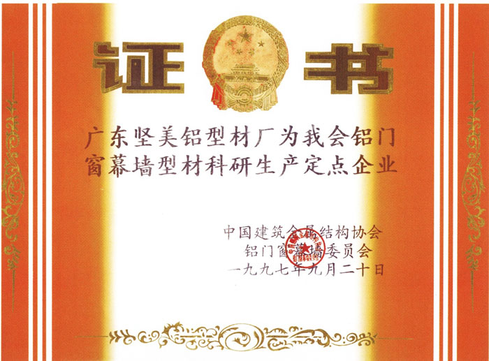 1997鋁門窗幕墻科研定點生產(chǎn)企業(yè)