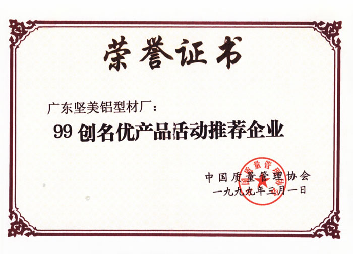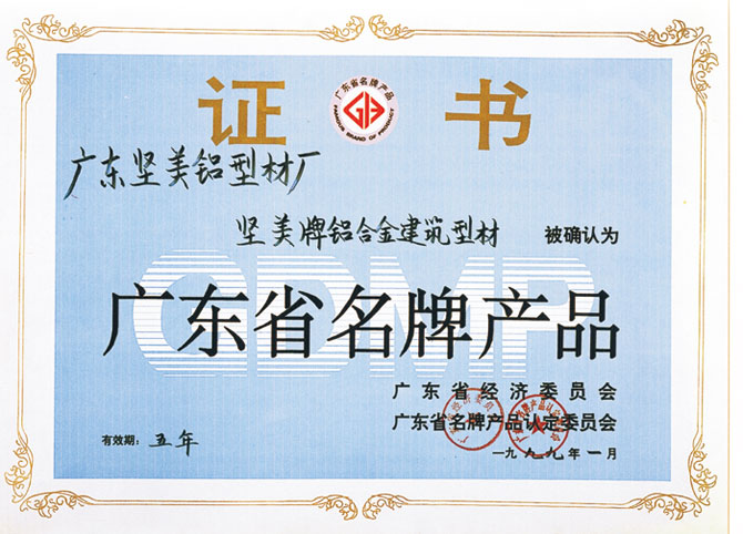 1999年廣東省優(yōu)質(zhì)產(chǎn)品