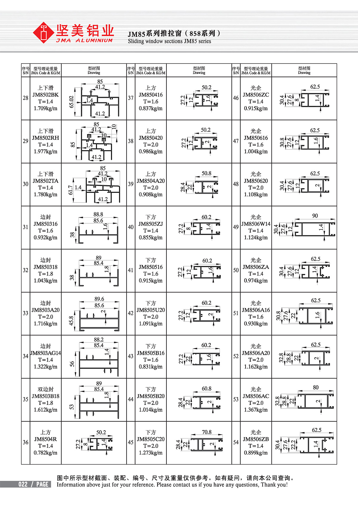 Accueil - Centre de produits - Fenêtres & portes ordinaires - Sliding window sections - Series JM85 Sliding window