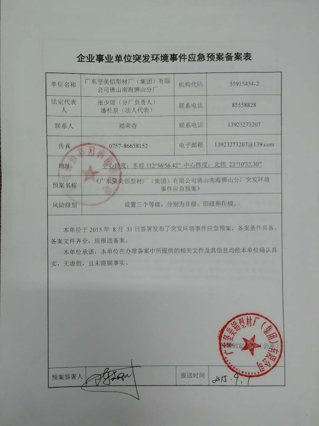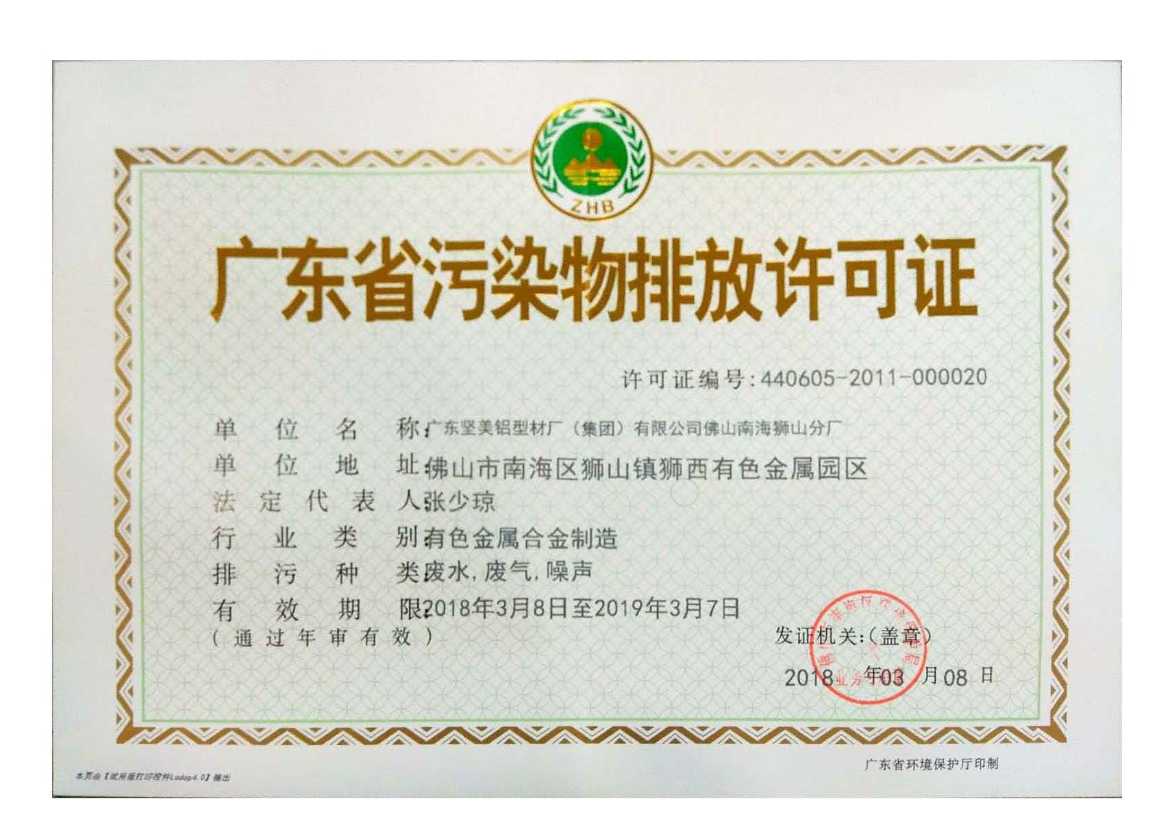 廣東堅美鋁型材廠(集團)有限公司佛山南海獅山分廠2018年度環(huán)境信息公開