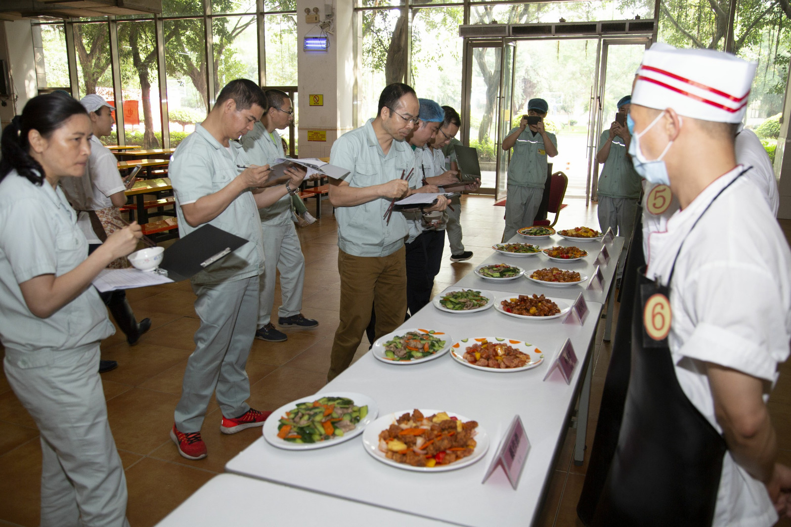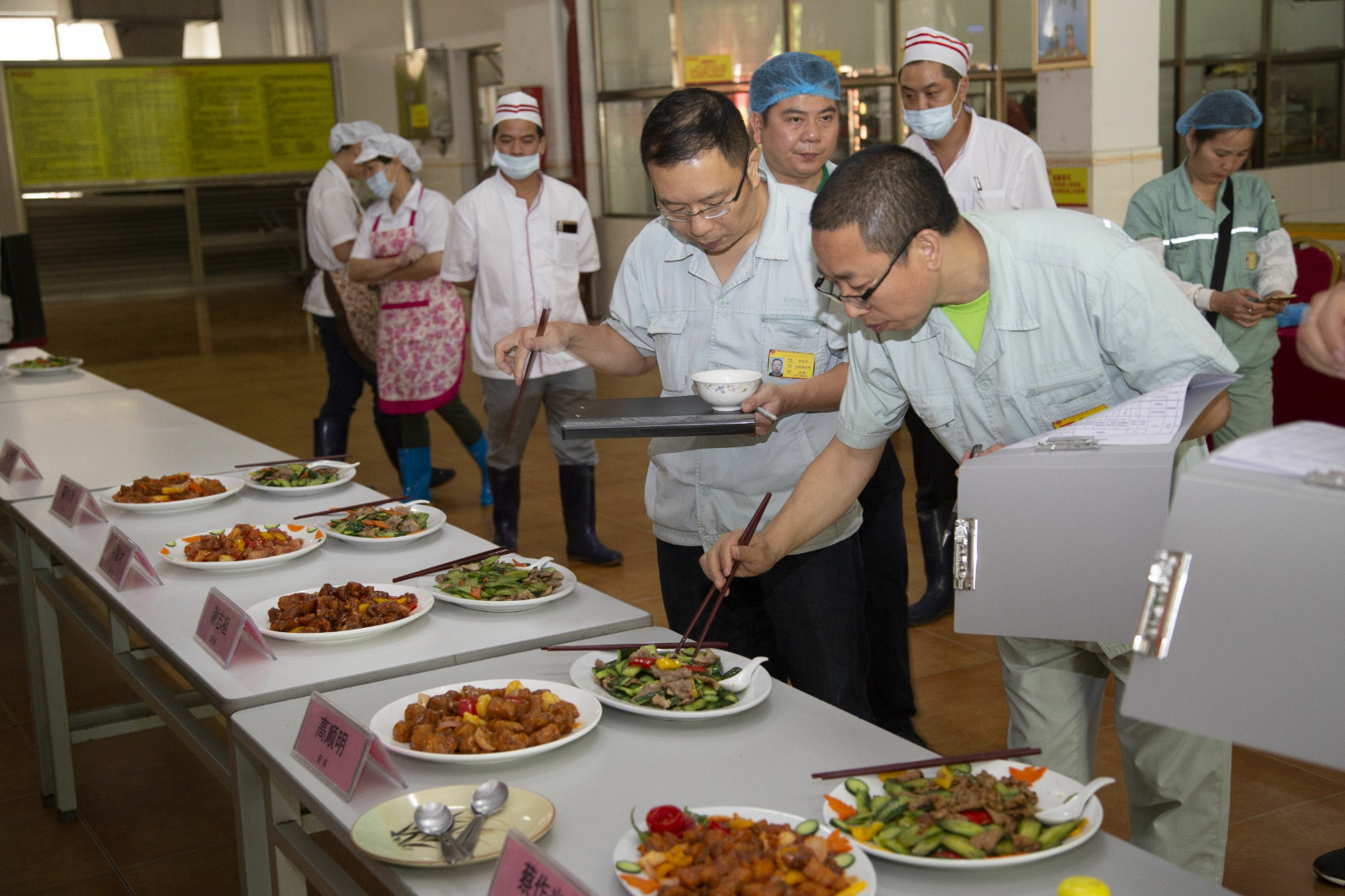 評委在認真品鑒菜肴