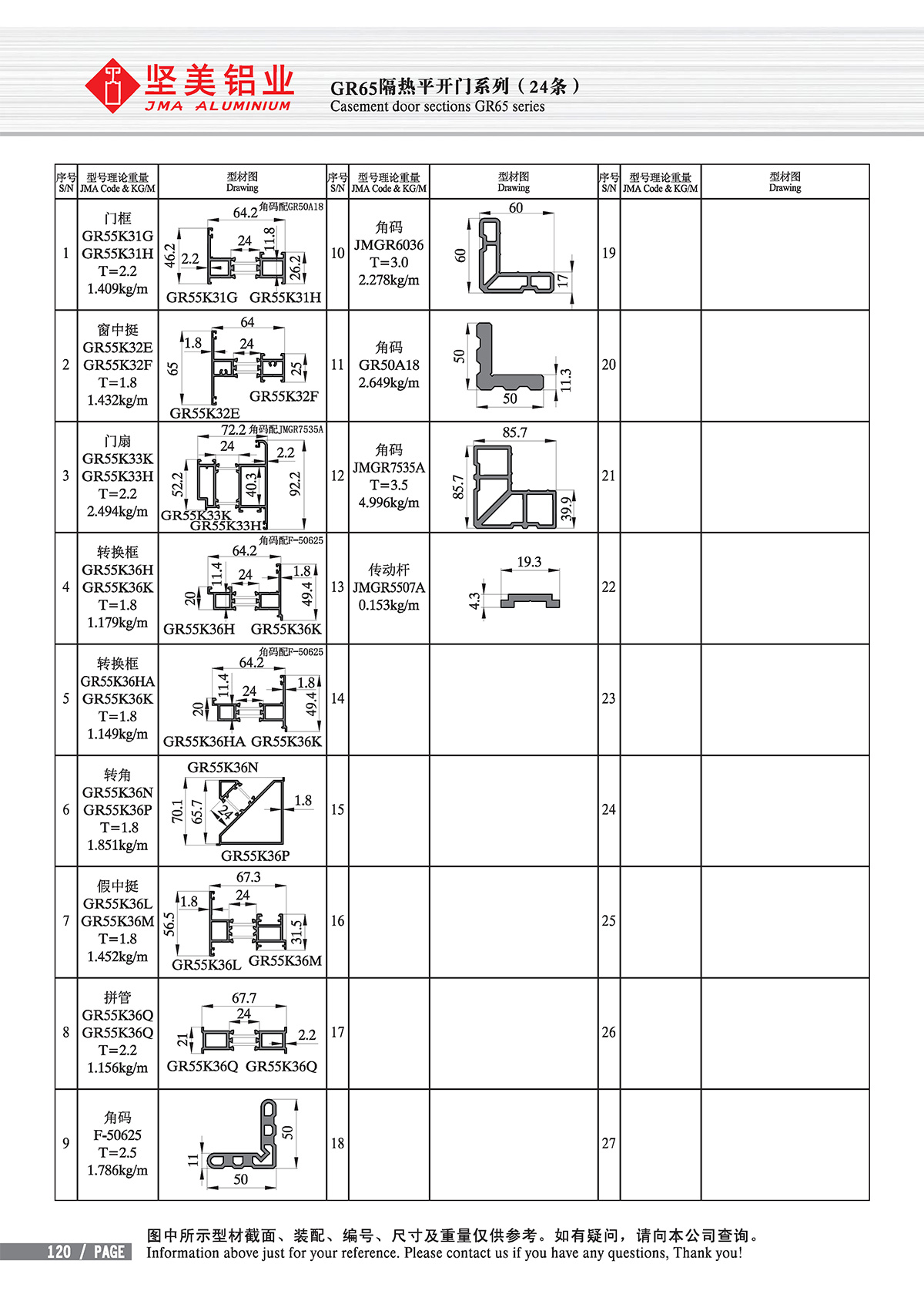 Trang ch? - Trung tam s?n ph?m - Cách nhi?t - new GB standard Thermal-break - Casement door sections GR55/60/65 series
